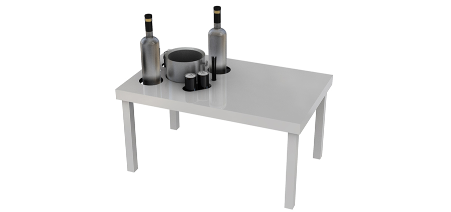 These larger, low steel tables are perfect for any nightclub and feature the built in bottle service concept. Each bucket, straw, energy drink and bottle have their own seat in this table, making it the perfect accessory for any VIP area.