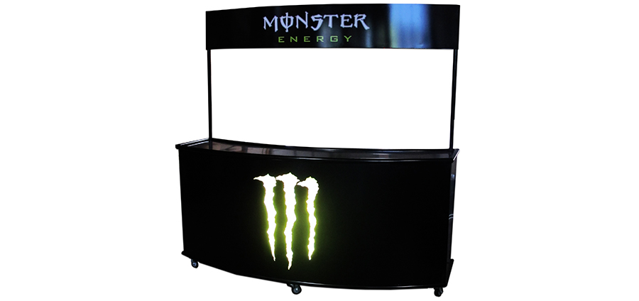 All of our portable bars can be completely customized including custom dimensions, accessories, colors, lighting, and branding.