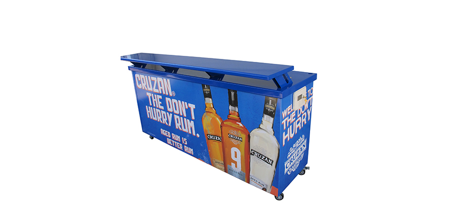 All of our portable bars can be completely customized including custom dimensions, accessories, colors, lighting, and branding.
