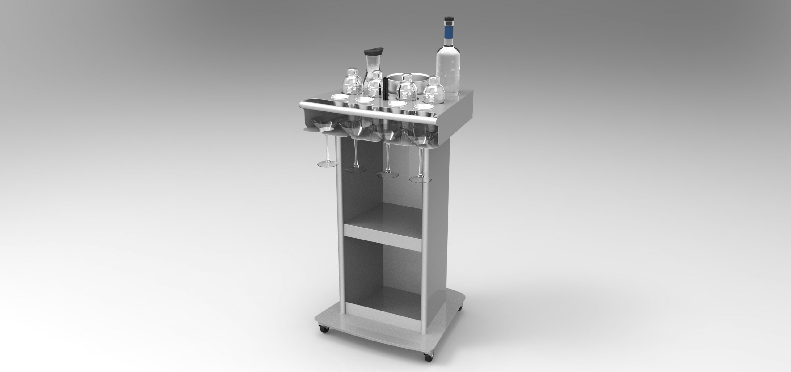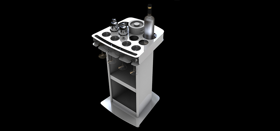 Promote your services without compromising your customer?s table space with the portable beverage cart. Designs are available with one- or two-bottle carrying capability, in locking and non-locking styles.